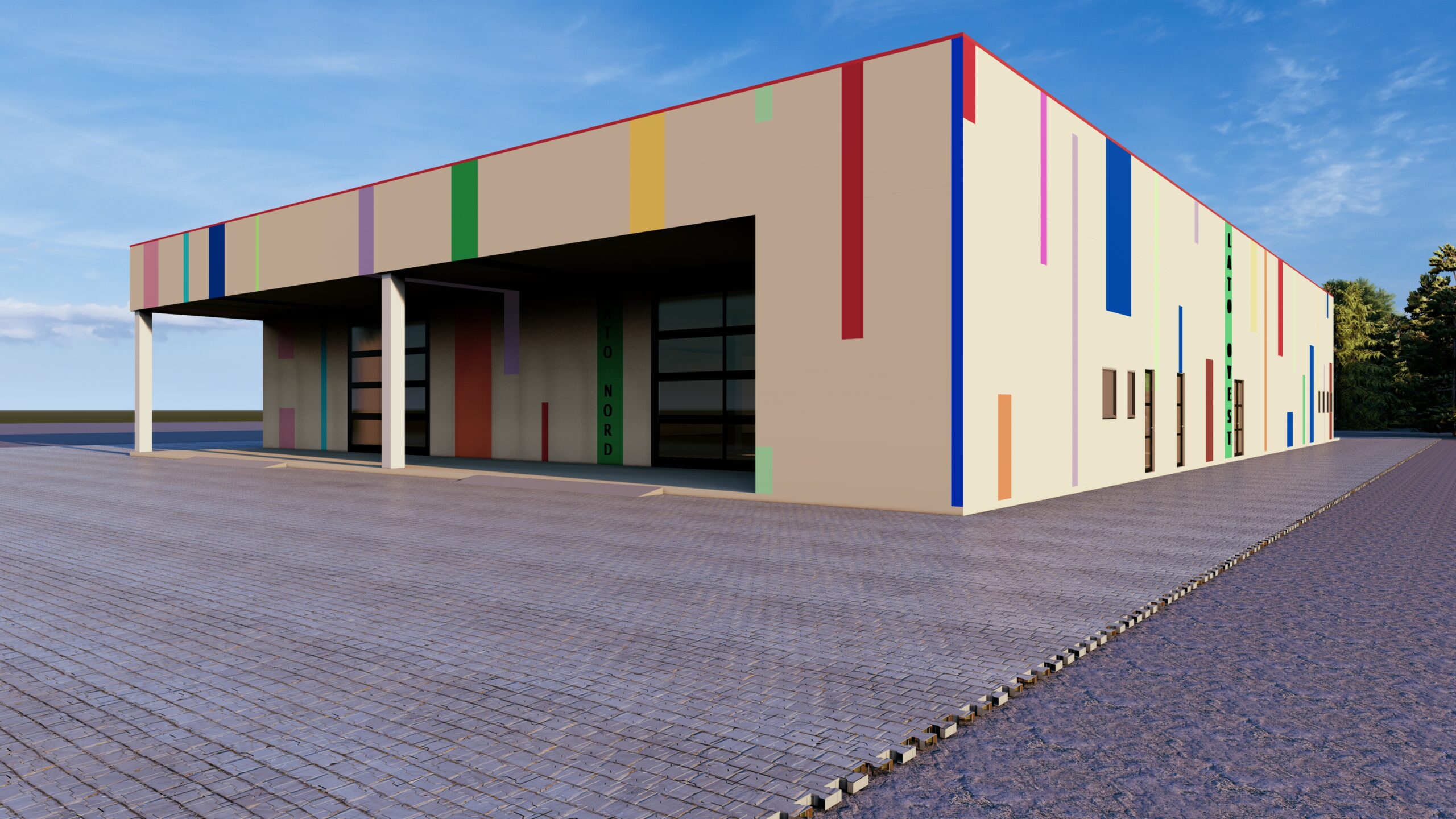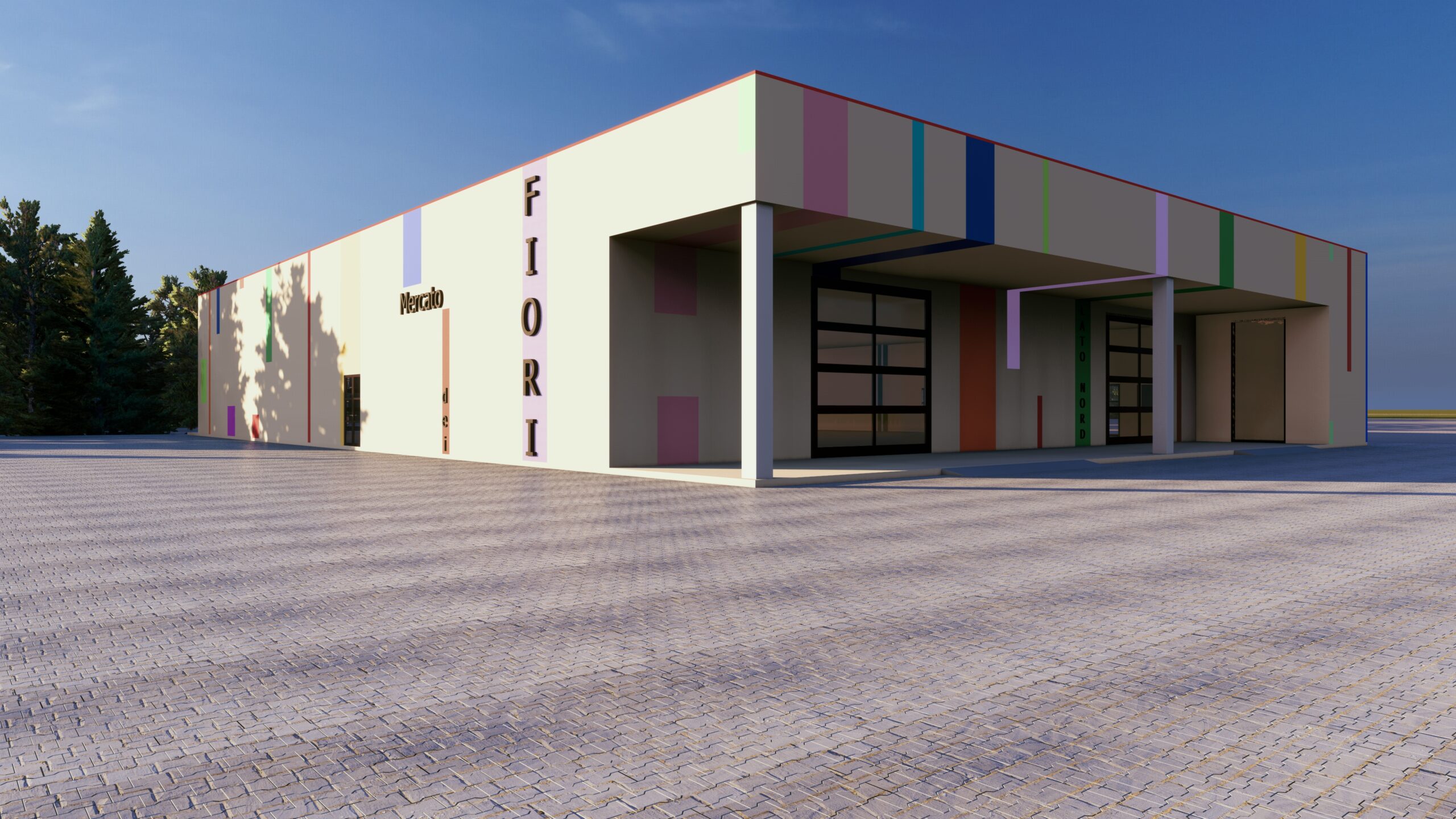 Gara per migliorie di ex capannone industriale per lo sviluppo economico del mercato della floricoltura. Sistemazione degli spazi esterni, riqualificazione delle facciate con sistemi NZEB, implementazione degli impianti tecnologici.